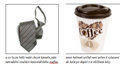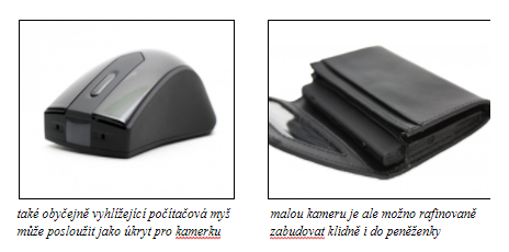 K oblíbeným produktům patří mimo jiné miniaturní kamery, jejichž hlavními výhodami jsou, vedle jejich rozměrů a zaručené diskrétnosti, také jejich jednoduchá aktivace a vysoká kvalita zvukového a vizuálního záznamu. Mini kamery je pro nepovolané osoby prakticky nemožné postřehnout a odhalit, natož zcela eliminovat. Na druhou stranu jsou technicky vybavené na úrovni plně postačující k získání kvalitního usvědčujícího materiálu.